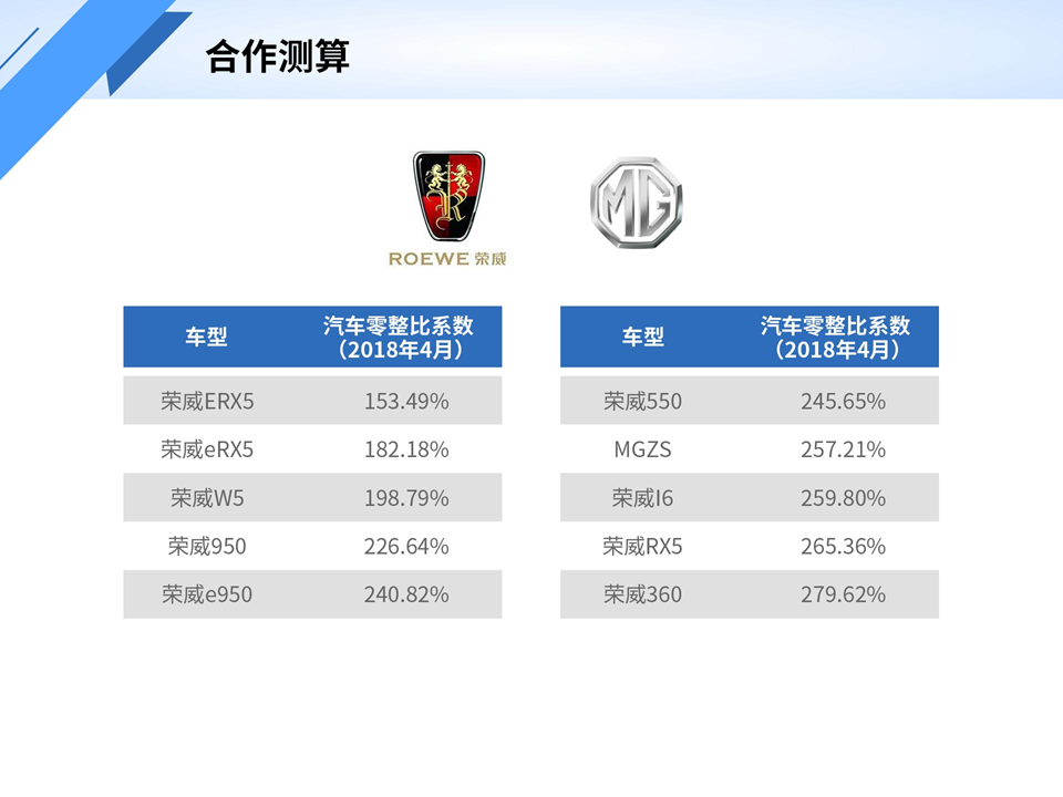 汽车主机厂合作测算零整比数据(2018年4月)
